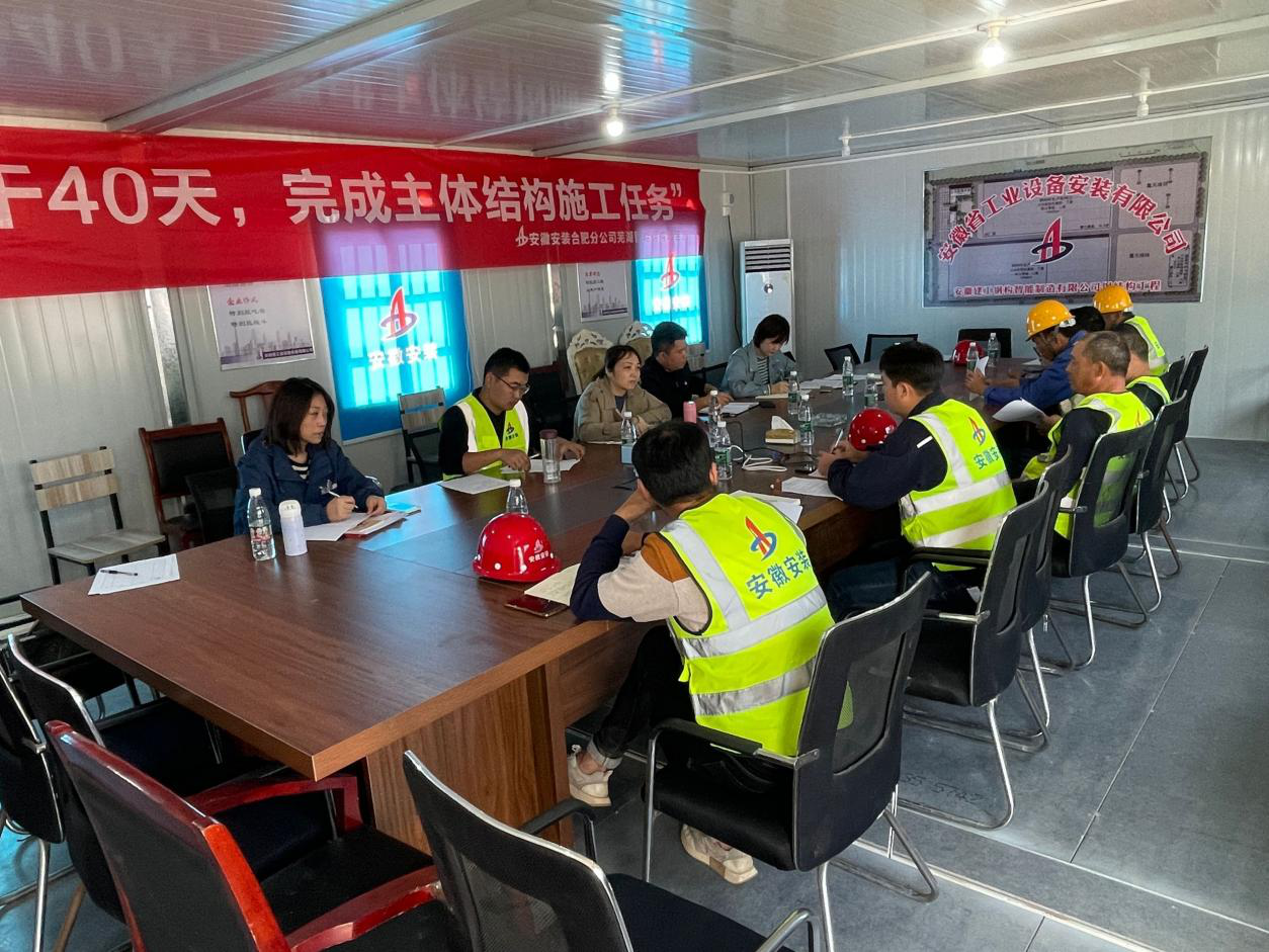 10月29日,安徽安裝合肥分公司建工智能鋼構項目在項目部會議室開展“大干40天,完成主次構施工任務”勞動競賽大討論。公司紀委副書記、工會副主席王敏,合肥分公司副經(jīng)理夏國祥、工會副主席杜瓊、項目管理人員等參加會議。
