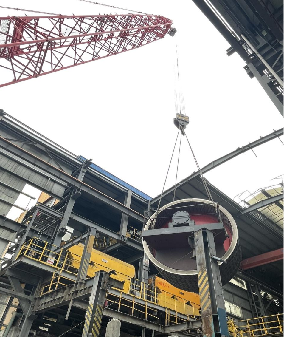 現場強磁機共3臺,最大單體配件重量為81噸,最遠吊裝半徑大達28米,全部安裝在老廠房內,吊裝精度要求高,如何保證設備構件在吊裝時不發生扭曲變形是工程的重點、難點。整個吊裝過程中,項目團隊通力合作,精心策劃,科學組織,合理安排,3臺強磁選機吊裝的順利完成,為后續安裝工作打下了堅實基礎。